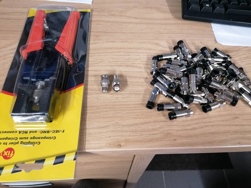 The crimping tool, F connectors and the needed adapter are arrived.