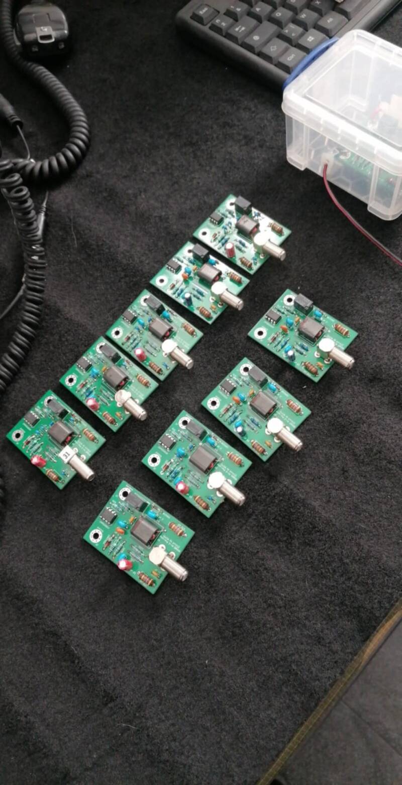 Preamp and coaxes are ready...the green coaxes are 75 Ohm, the black 50 Ohm..The two black ones are identical so I have no difference in phase here.